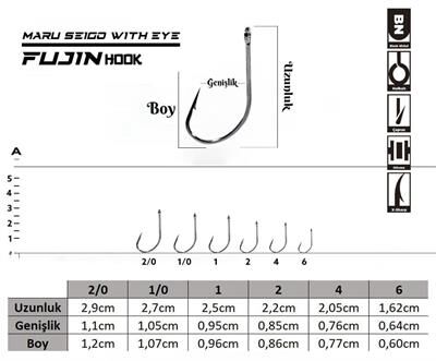 Fujin Maru Seigo With Eye Çapraz Delikli Olta Kancası, canlı yem avları ve karagöz balığı, eşkina balığı gibi taş balıkları için özel olarak tasarlanmış fiyat performans ürünlerinden. Hedef balığınıza göre farklı numaralarını seçerek kullanabilirsiniz. Black Nickel kaplamalıdır, ekstra keskindir.